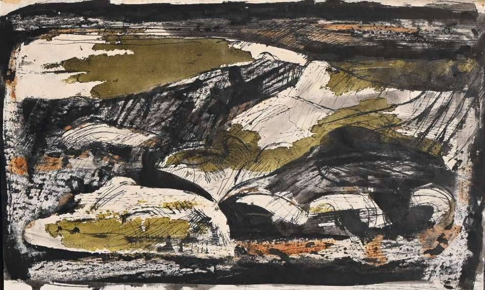 Previous Next Paintings Previous work Next work Cader Idris 1963 Painting Ink & Mixed Media 32.5 x 56 cms (12.80 x 22.05 ins) Ref: 669181/TC1245 Enquire about this item Share: