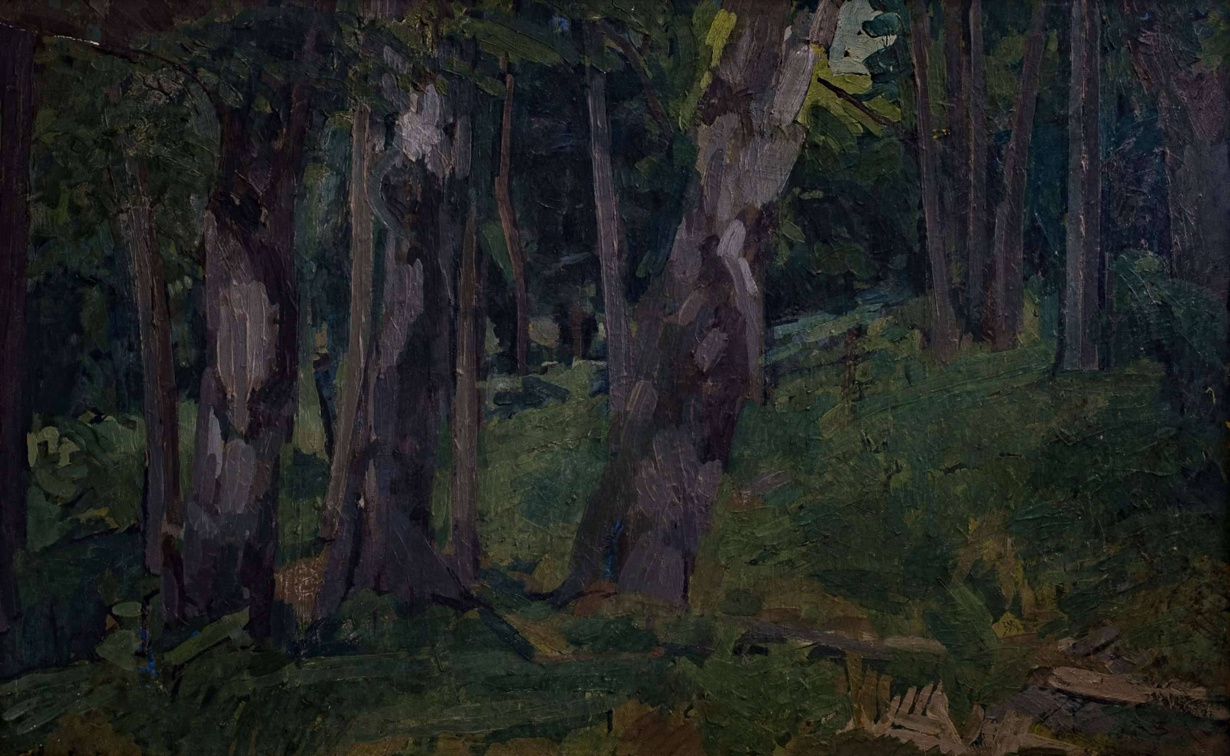 Five years on, Cross revisited his earlier work also entitled Hall's Wood (TC55), reinterpreting the scene with bold abstract shapes and a strong colour palette.